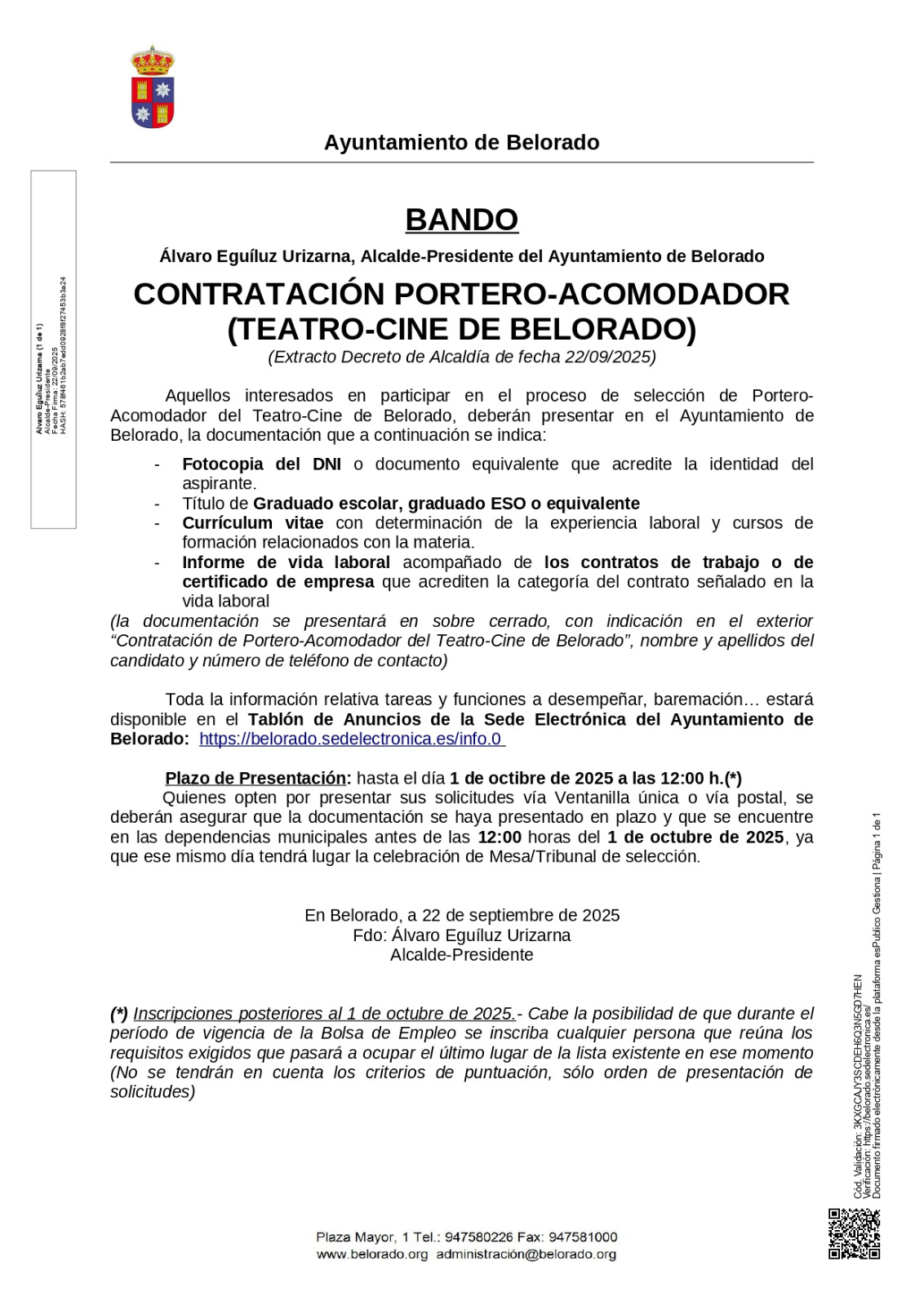 ANUNCIO EMPLEO DE AYUNTAMIENTO DE BELORADO
