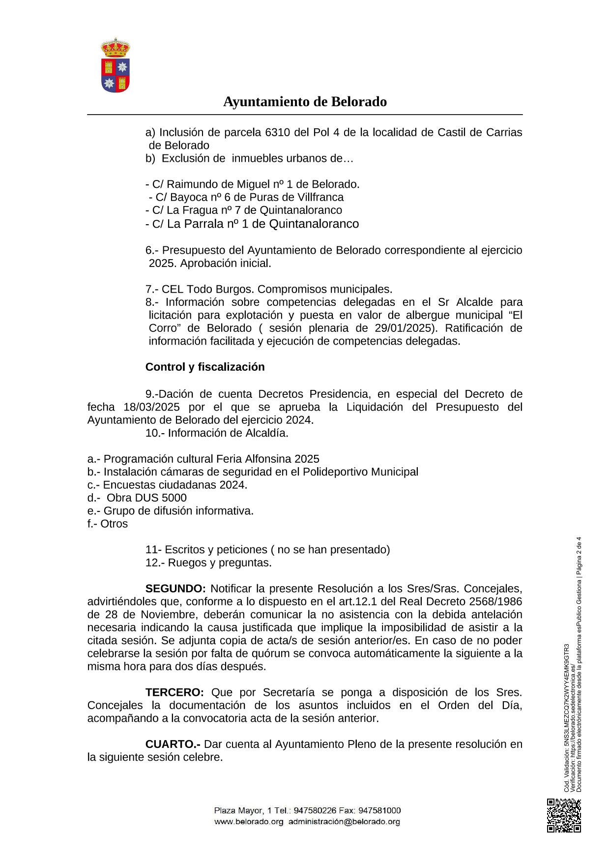 2025-05-14 🙌Convocatoria pleno ordinario 📆 Jueves 15 de mayo ⌚21hrs. 🏘Salón de plenos del Ayuntamiento de #Belorado #beloradotienetirón